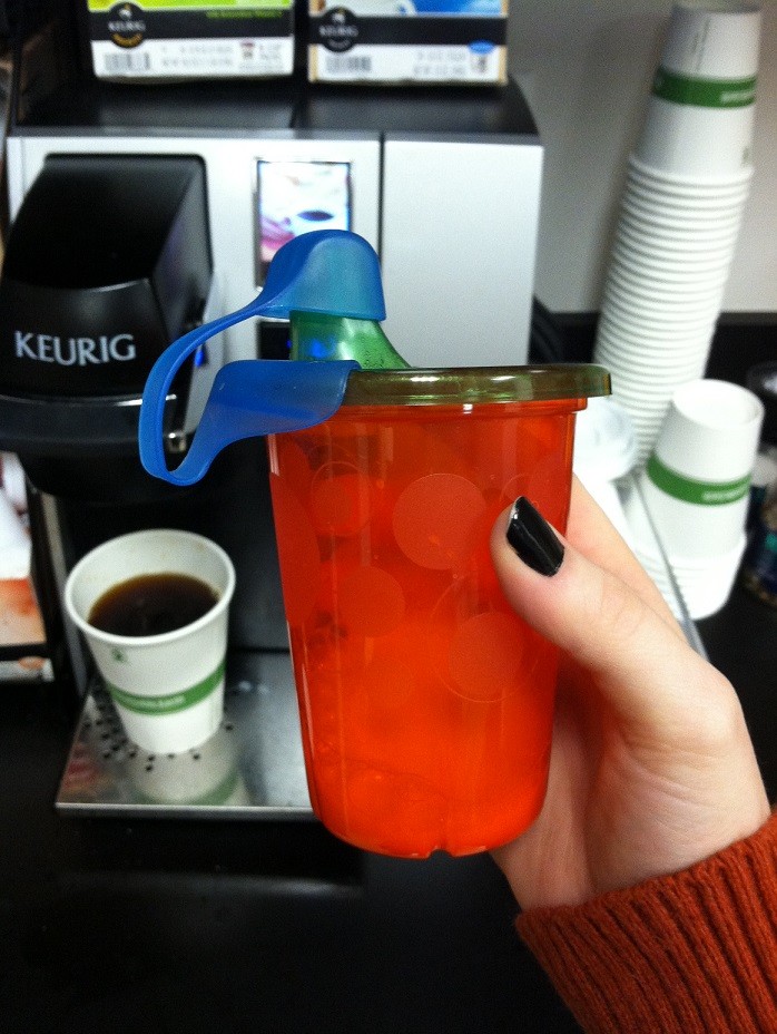 I drink soy milk in my coffee. People were drinking all of my soy milk. I solved this problem by putting my soy milk in a sippy cup. Now everyone is afraid of what might actually be inside this cup. Problem solved, y’all.