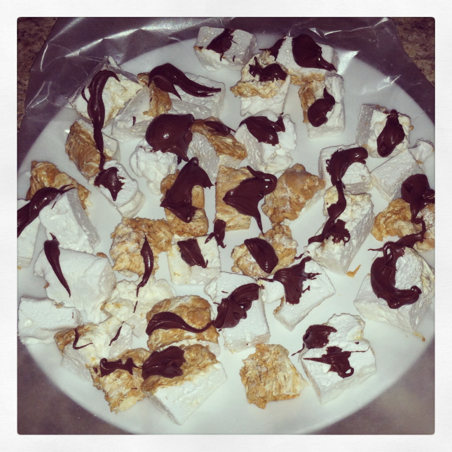 12. Attempt to make chocolate for dipping using only the ingredients you find in your closet and your microwave. Burn two batches of chocolate and hit your head on the microwave door. Melt a third batch, and dump chocolate haphazardly over the marshmallows because now you just want to go to bed.