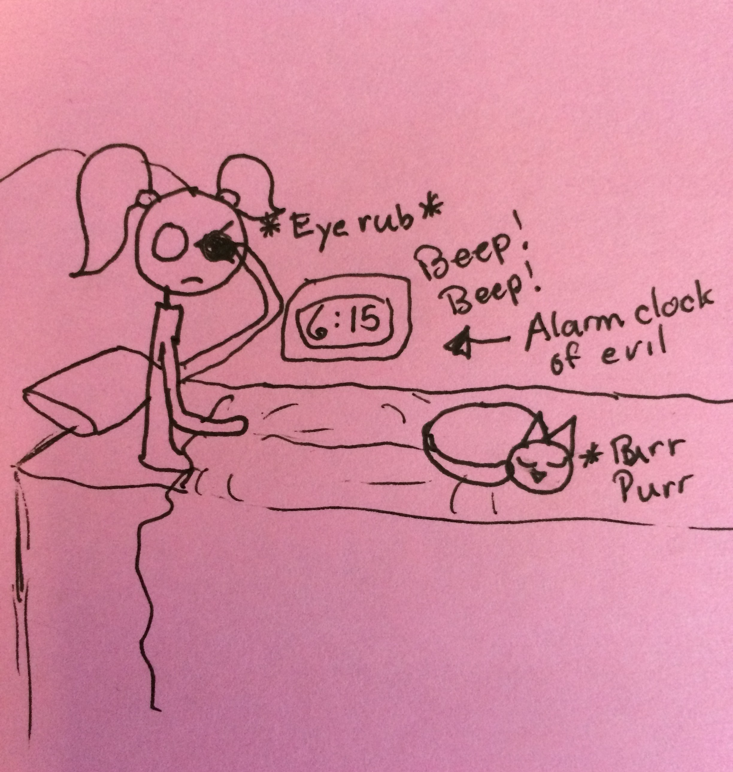So, at bedtime (still 8:00 o’clock), I scooped up my cat and carted her off to bed with me. Normal people allow their cats to explore and figure out sleeping space on their own. My cat prefers to be specially invited and then hand-carried to bed, or she will sulk on the floor all night.