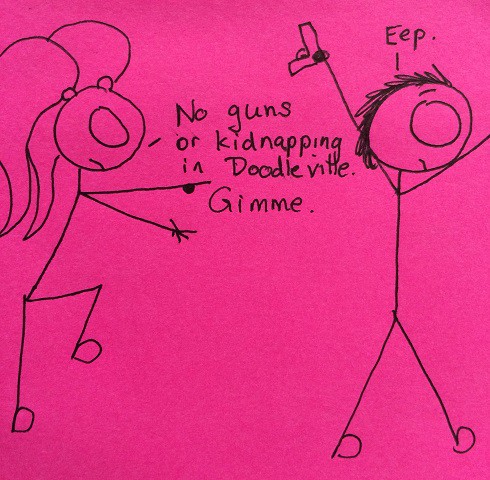 This is probably the most dangerous doodle I have ever drawn. Also, I only felt like drawing three hostages, because this is a generic example.